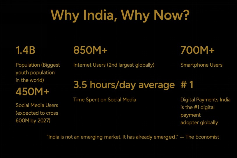With 1.4B people, 850M+ internet users, and the largest youth population, it offers unmatched scale and influence.