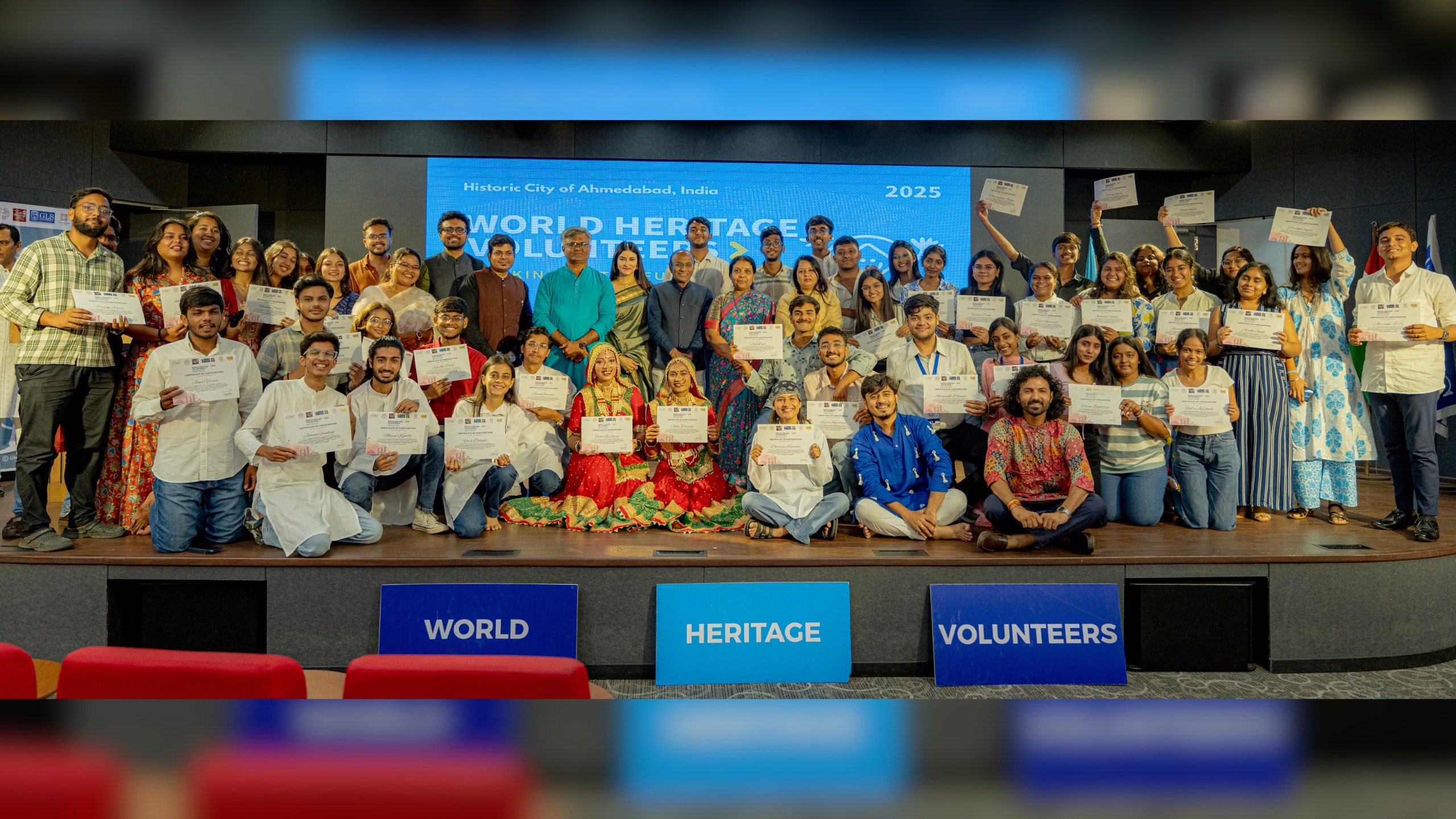 The event brought together dignitaries, partners, volunteers, and organisers to mark the culmination of a powerful ten-day journey that immersed youth in the living heritage of India’s first UNESCO World Heritage City – Ahmedabad. As part of the WHV programme, 45 youth volunteers led by Ms Niyati Bajpai, Manager Heritage Programs at Elixir Foundation, explored the city’s diverse historical landmarks, connected with communities, and participated in workshops, conservation sessions and creative storytelling formats to understand the layers of heritage that shape the city’s soul.
