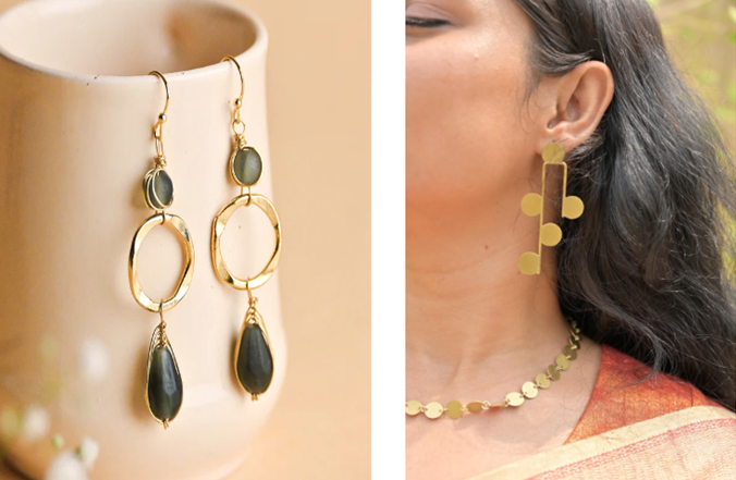 • Bold handcrafted earrings – Statement pieces that elevate ethnic wear and special occasions.